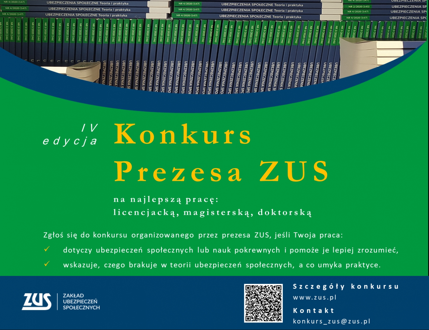 W tym roku odbędzie się IV edycja Konkursu Prezesa Zakładu Ubezpieczeń Społecznych na najlepszą pracę licencjacką, magisterską oraz doktorską z zakresu ubezpieczeń społecznych.