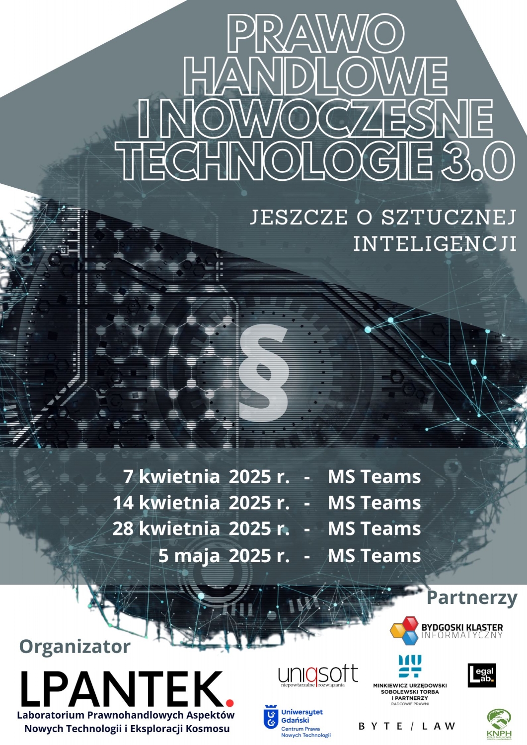 Laboratorium Prawnohandlowych Aspektów Nowych Technologii i Eksploracji Kosmosu (LPANTEK) wraz z Partnerami zapraszają do udziału w trzeciej edycji projektu pn. "Prawo handlowe i nowoczesne technologie".