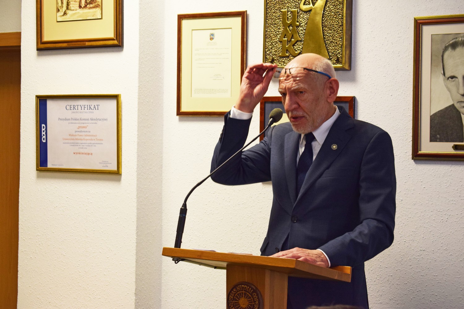 Prof. dr hab. Andrzej Jan Sokala urodził się 12 maja 1955 r. w Kamienicy Polskiej pod Częstochową. W 1981 r. został zatrudniony w Katedrze Prawa Rzymskiego UMK w Toruniu. W roku 1989 uzyskał stopień naukowy doktora nauk prawnych, a jego praca doktorska uzyskała wyróżnienie w prestiżowym konkursie „Państwa i Prawa”. W 1999 r. uzyskał stopień doktora habilitowanego nauk prawnych, a w 2011 r. Prezydent Rzeczypospolitej Polskiej nadał mu tytuł profesora nauk prawnych. Zajmuje się prawem rzymskim i prawem wyborczym. Jest autorem i współautorem licznych publikacji naukowych. Kieruje Katedrą Prawa Rzymskiego UMK (od 2000 r.) oraz Centrum Studiów Wyborczych UMK (od 2008 r.), którego jest pomysłodawcą i założycielem. Profesor Andrzej Sokala ma duże doświadczenie organizacyjne. W latach 2000-2005 pełnił funkcję prodziekana (przez dwie kadencje), zaś w latach 2005-2012 – funkcję dziekana Wydziału Prawa i Administracji UMK (również przez dwie kadencje). W latach 2012-2020 był prorektorem Uniwersytetu Mikołaja Kopernika w Toruniu ds. Studenckich i Polityki Kadrowej, zaś w latach 2020-2024 sprawował zaszczytną funkcję Rektora UMK. Wypromował ośmiu doktorów. Za swoją działalność edukacyjną uzyskał Medal Komisji Edukacji Narodowej przyznany przez Ministra Nauki i Szkolnictwa Wyższego w 2005 r. Jest członkiem kilku towarzystw naukowych. W kadencji 2011-2015 był z wyboru członkiem Komitetu Nauk o Kulturze Antycznej Polskiej Akademii Nauk (w Komitecie pełnił funkcję Przewodniczącego Komisji Wyborczej). Odbył staże naukowe, m.in. w Rzymie, Padwie i Perugii. Był stypendystą Centro Incontri e Studi Europei w Rzymie. W latach 1991-2001 pełnił funkcję Dyrektora Delegatury Krajowego Biura Wyborczego w Toruniu. W grudniu 2003 r. Sejm wybrał go na sędziego Trybunału Stanu. Współpracuje z Państwową Komisją Wyborczą, z Krajowym Biurem Wyborczym. W maju 2000 r. Prezydent RP odznaczył go Złotym Krzyżem Zasługi „za zasługi w działalności na rzecz demokratyzacji prawa wyborczego i przeprowadzanych wyborów.
