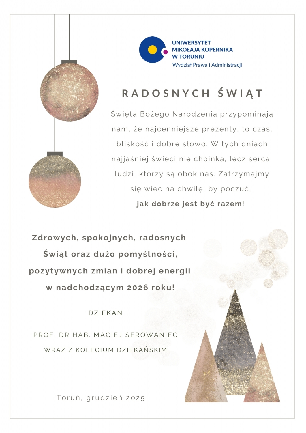 Zdrowych, spokojnych, radosnych Świąt oraz dużo pomyślności, pozytywnych zmian i dobrej energii w nadchodzącym 2026 roku!