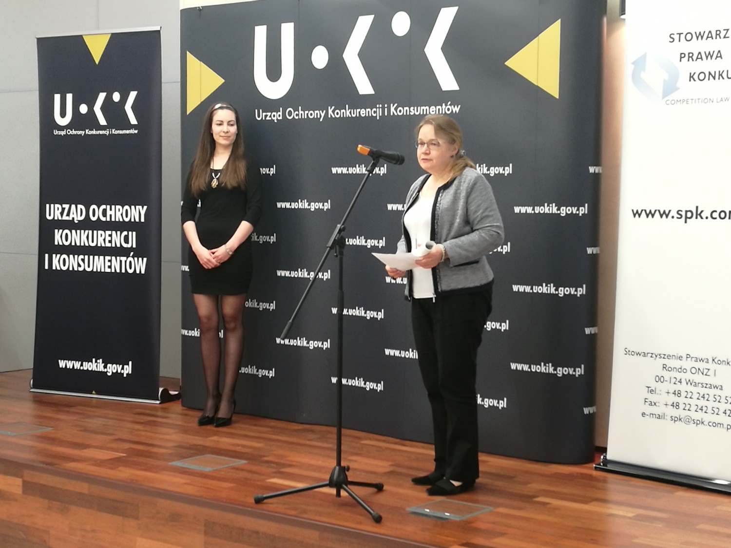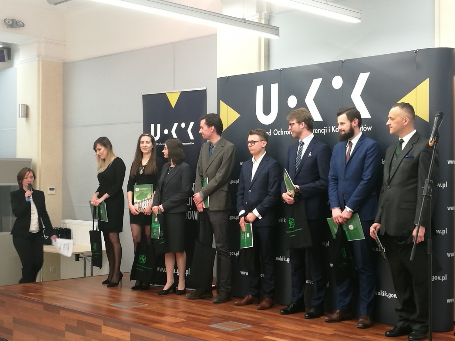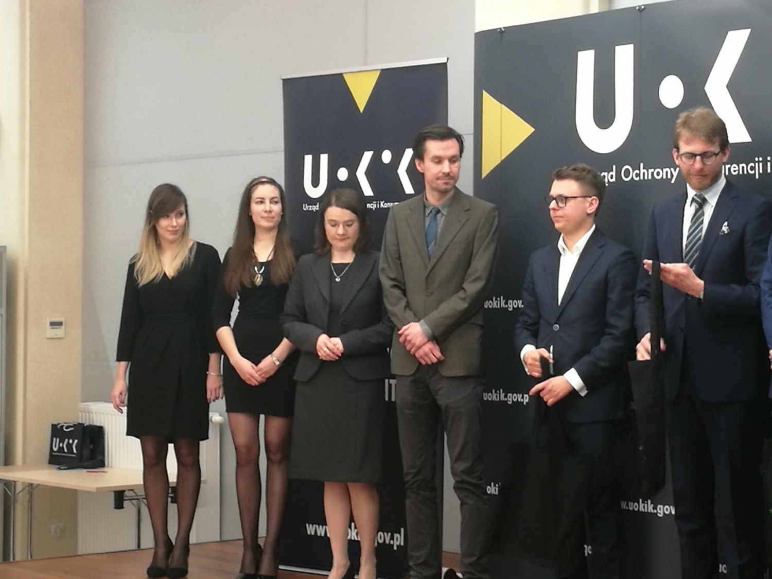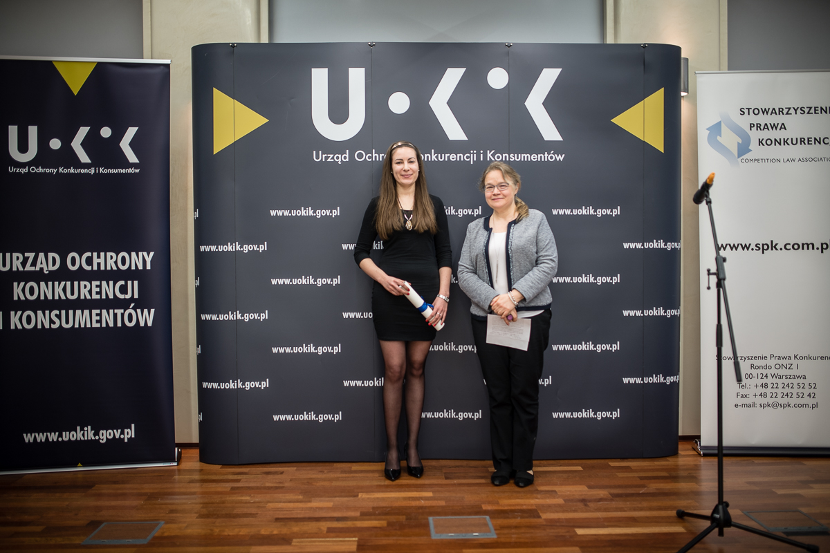 Z radością informujemy, że absolwenta stacjonarnego prawa na Wydziale Prawa i Administracji UMK w Toruniu, pani mgr Kamila Gąsior, zdobyła wyróżnienie Stowarzyszenia Prawa Konkurencji w konkursie Prezesa Urzędu Ochrony Konkurencji i Konsumentów na najlepszą pracę magisterską poświęconą ochronie konkurencji. Nagrodzona praca zatytułowana "Podatek od sprzedaży detalicznej a pomoc publiczna dla przedsiębiorców" została napisana pod kierunkiem dr hab. Agnieszki Olesińskiej, prof. UMK. Serdecznie gratulujemy !!