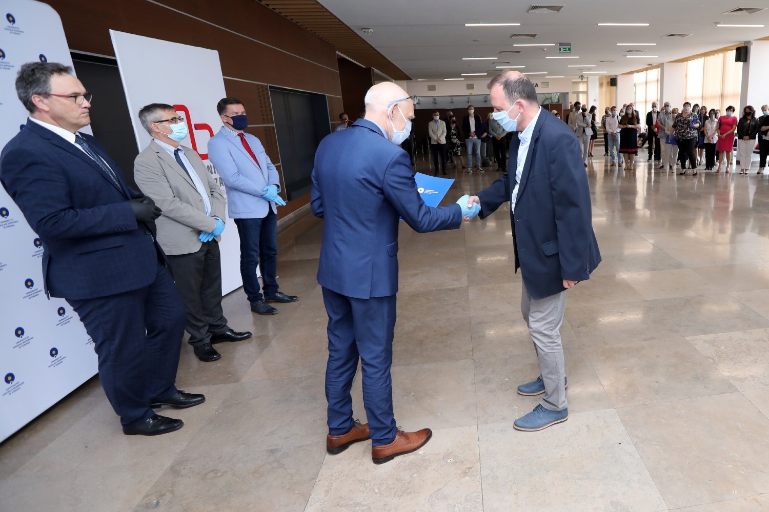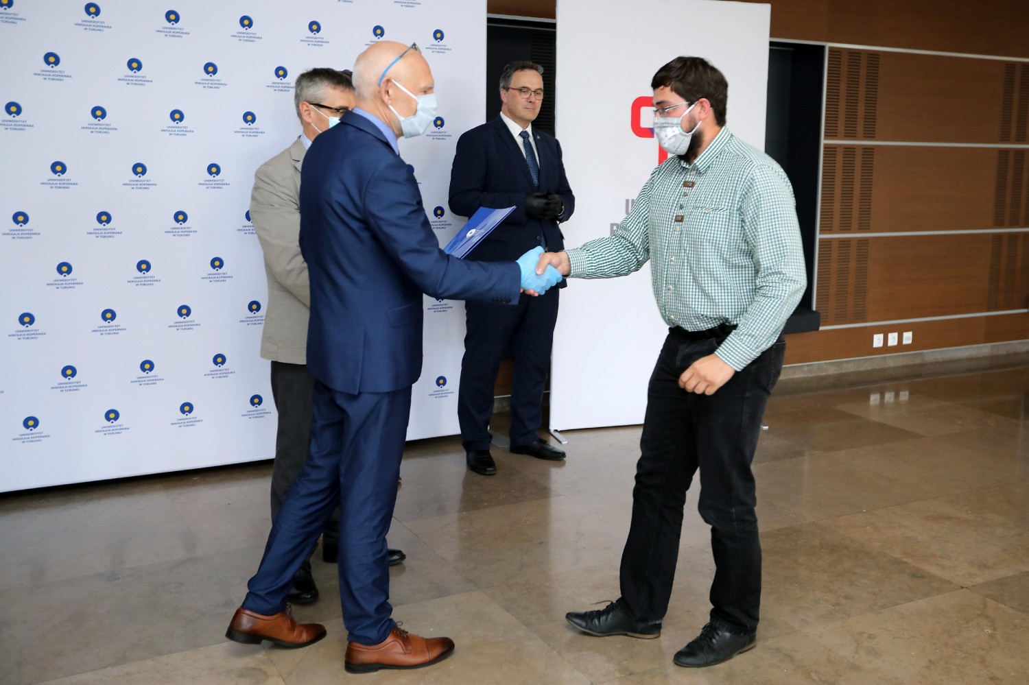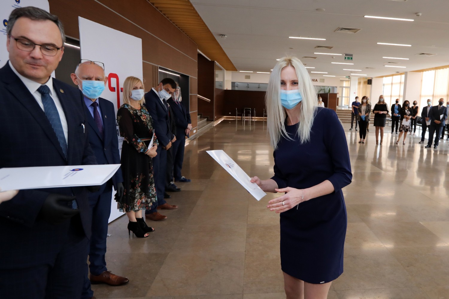 Nagrody i wyróżnienia wręczali prorektor prof. dr hab. Andrzej Sokala, kanclerz dr Tomasz Jędrzejewski, Dyrektor Biblioteki Uniwersyteckiej dr Krzysztof Nierzwicki i dyrektor Uniwersyteckiego Centrum Informatycznego dr Tomasz Wolniewicz.