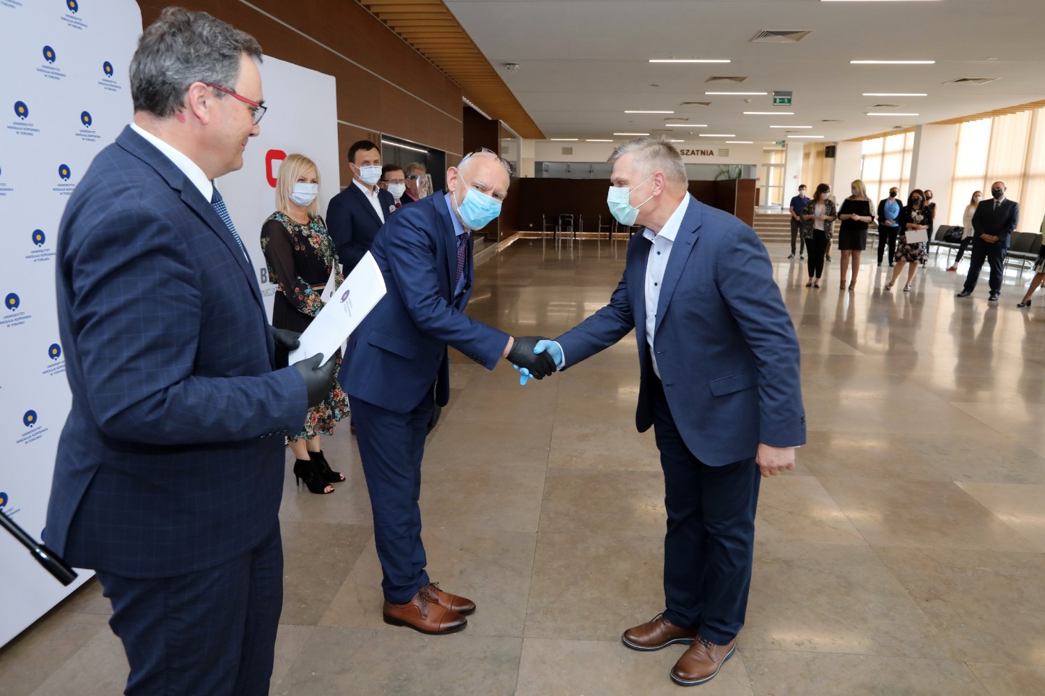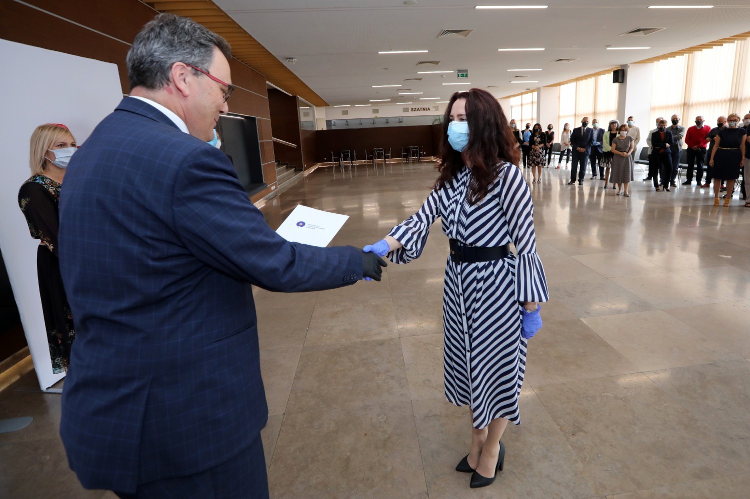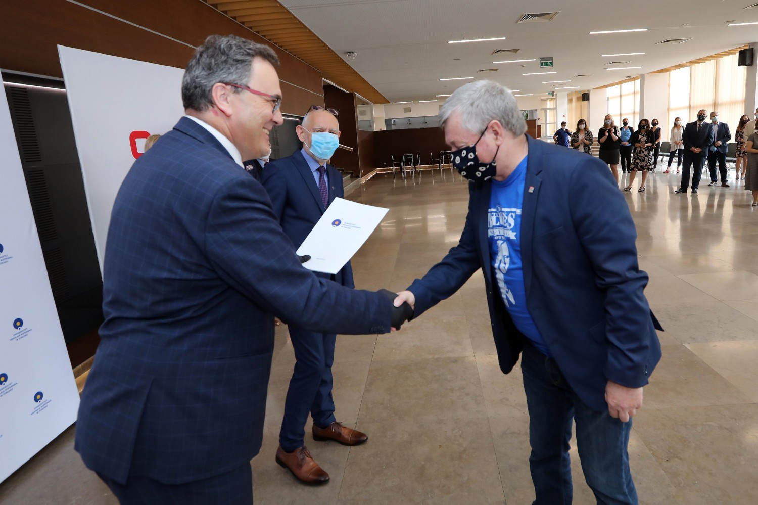 Nagrody i wyróżnienia wręczali prorektor prof. dr hab. Andrzej Sokala, kanclerz dr Tomasz Jędrzejewski, Dyrektor Biblioteki Uniwersyteckiej dr Krzysztof Nierzwicki i dyrektor Uniwersyteckiego Centrum Informatycznego dr Tomasz Wolniewicz.