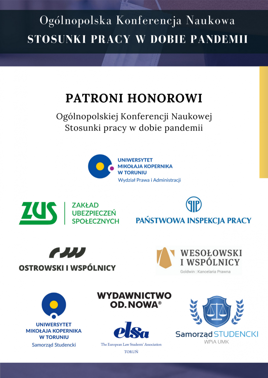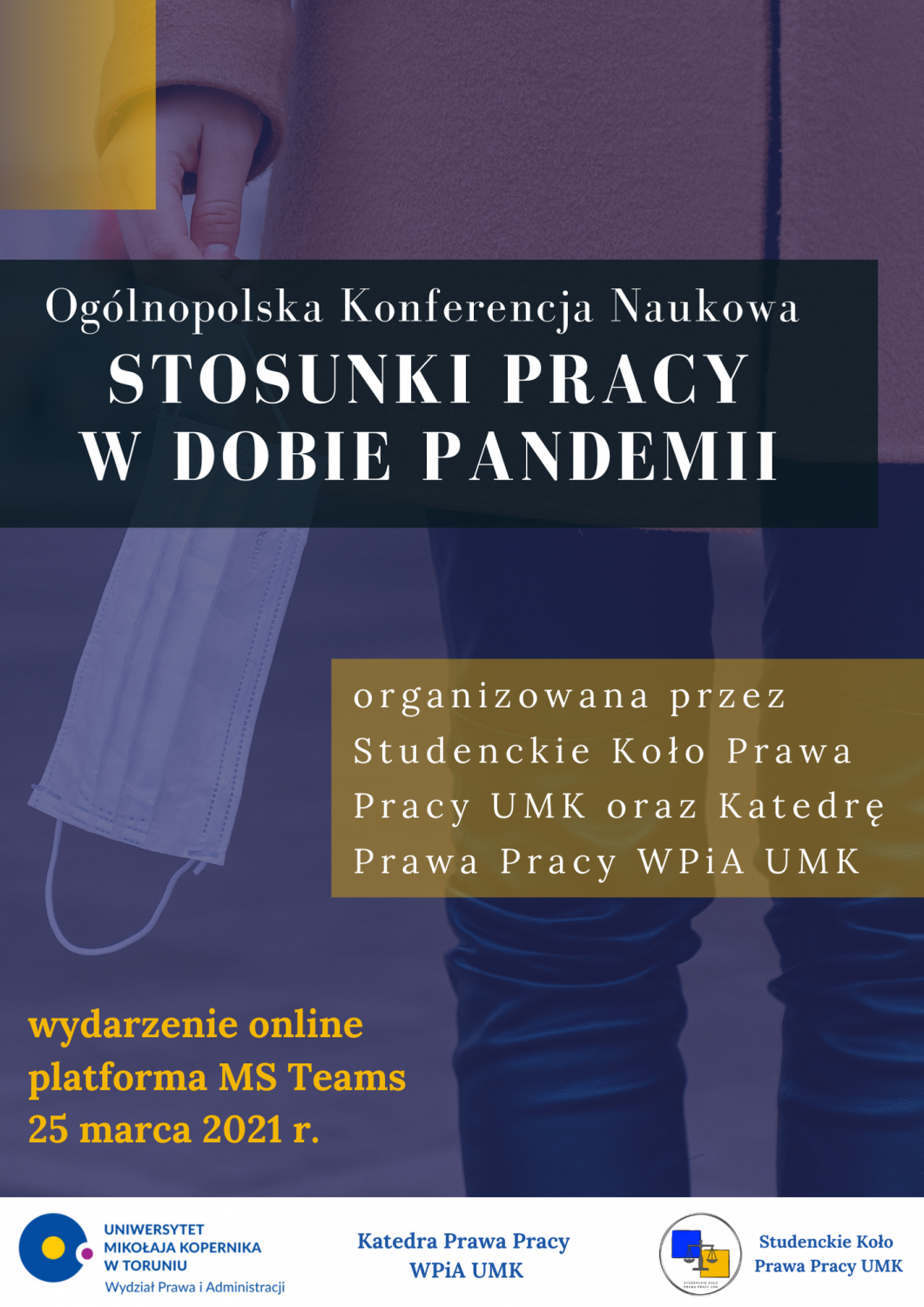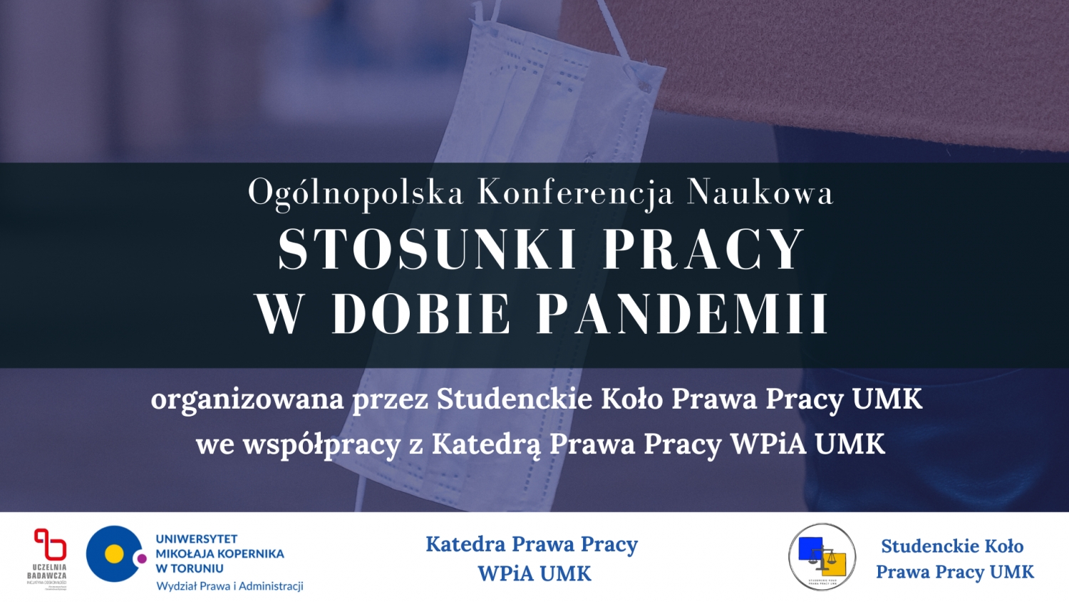 Studenckie Koło Prawa Pracy UMK oraz Katedra Prawa Pracy WPiA serdecznie zaprasza do udziału w charakterze słuchaczy w Ogólnopolskiej Konferencji Naukowej „Stosunki pracy w dobie pandemii”.