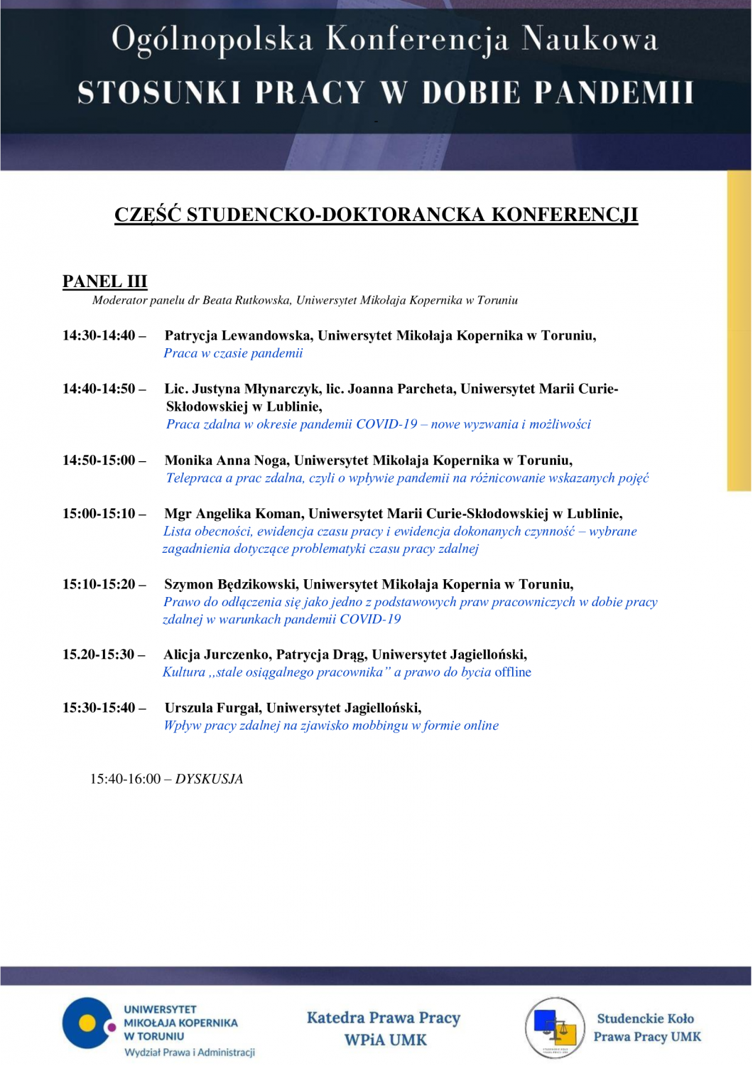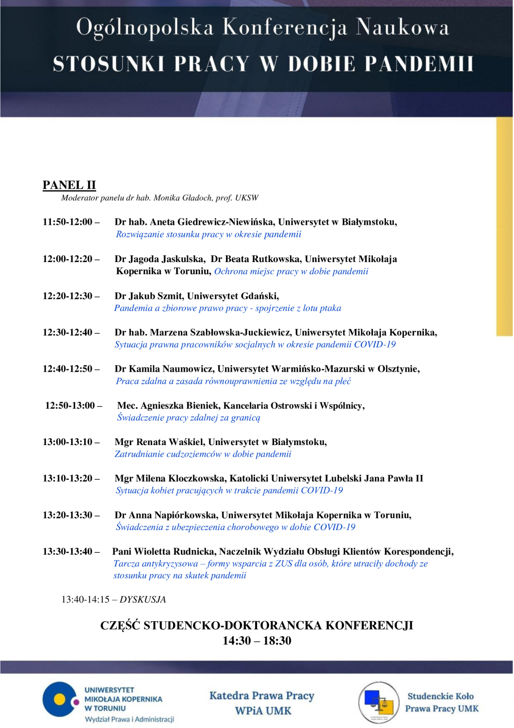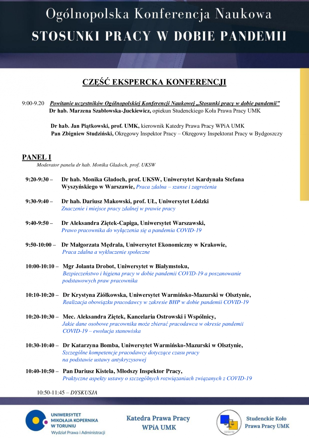 Ogólnopolska Konferencja Naukowa „Stosunki pracy w dobie pandemii”