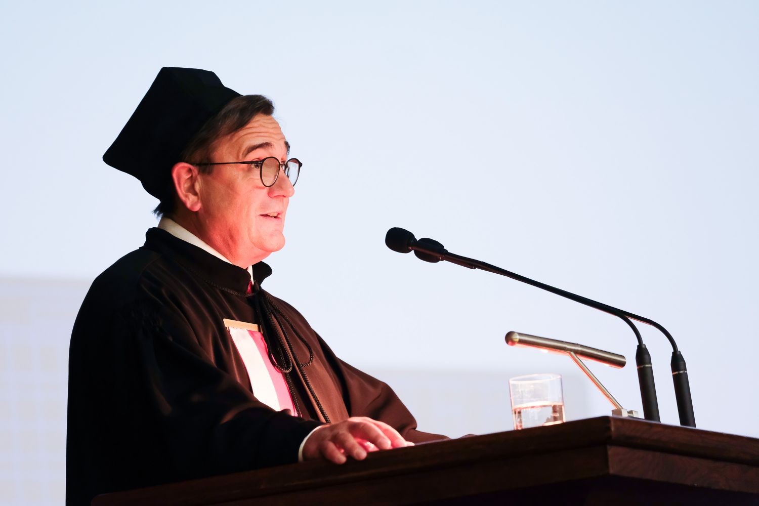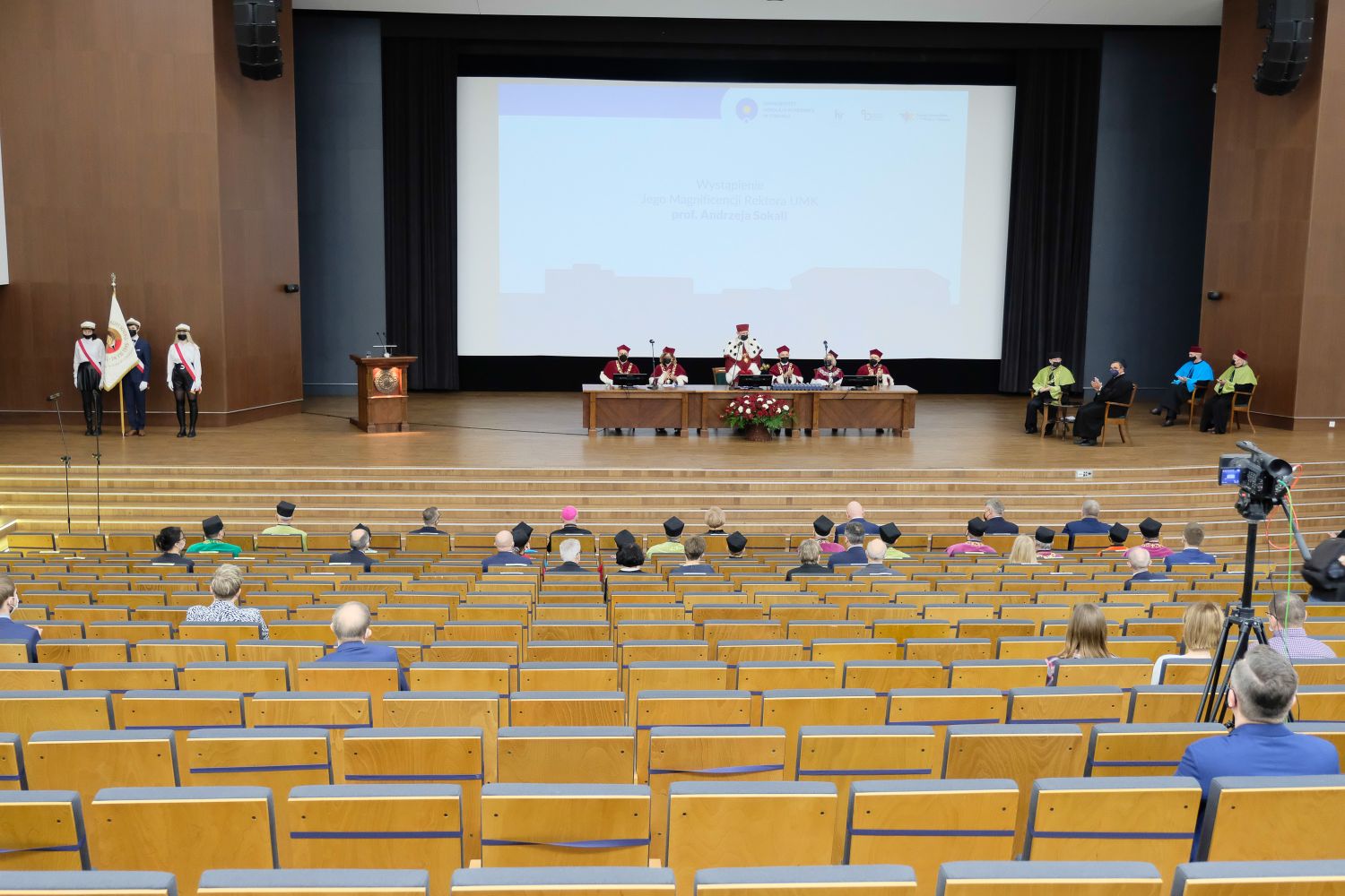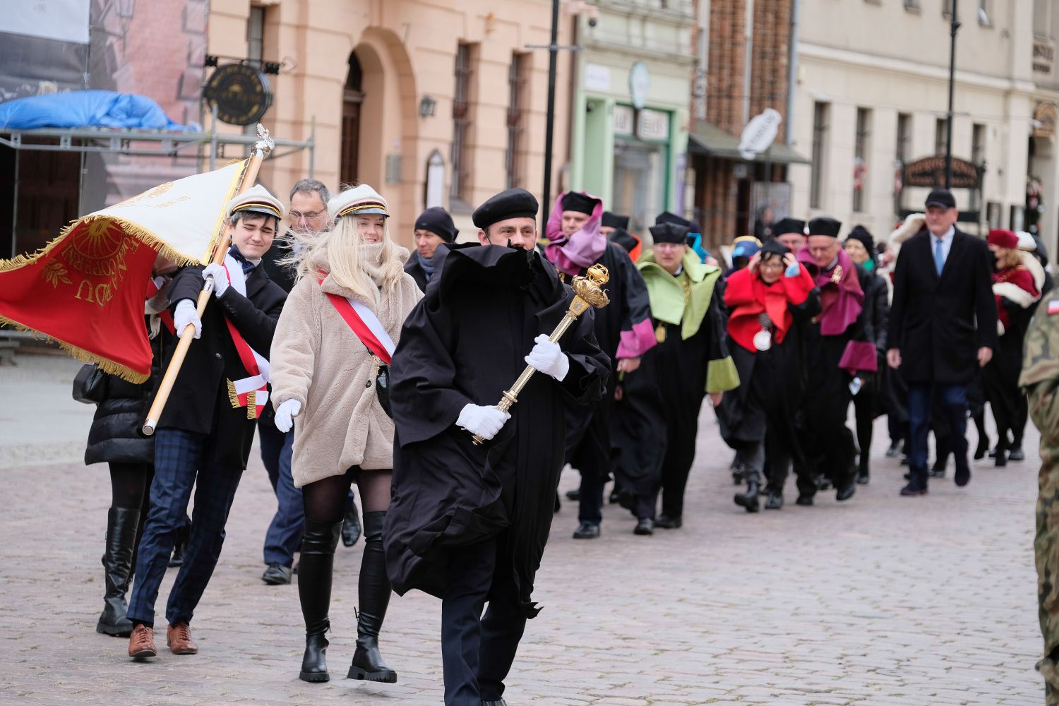 - Tegoroczne Święto otwiera czas przygotowań do czekającej nas dokładnie za rok okrągłej, 550. rocznicy urodzin naszego patrona – podkreślił JM Rektor UMK prof. dr hab. Andrzej Sokala w swoim wystąpieniu. - Przyszły rok będzie czasem, w którym szczególnie mocno przypominać będziemy dziedzictwo Mikołaja Kopernika, w tym jego przesłanie, które stało się dewizą toruńskiego uniwersytetu: Veritas in omnibus quaerenda est – We wszystkim szukać prawdy.