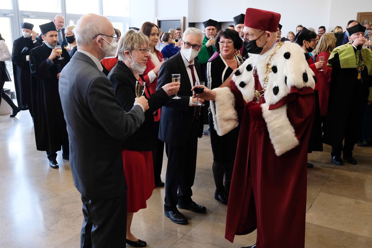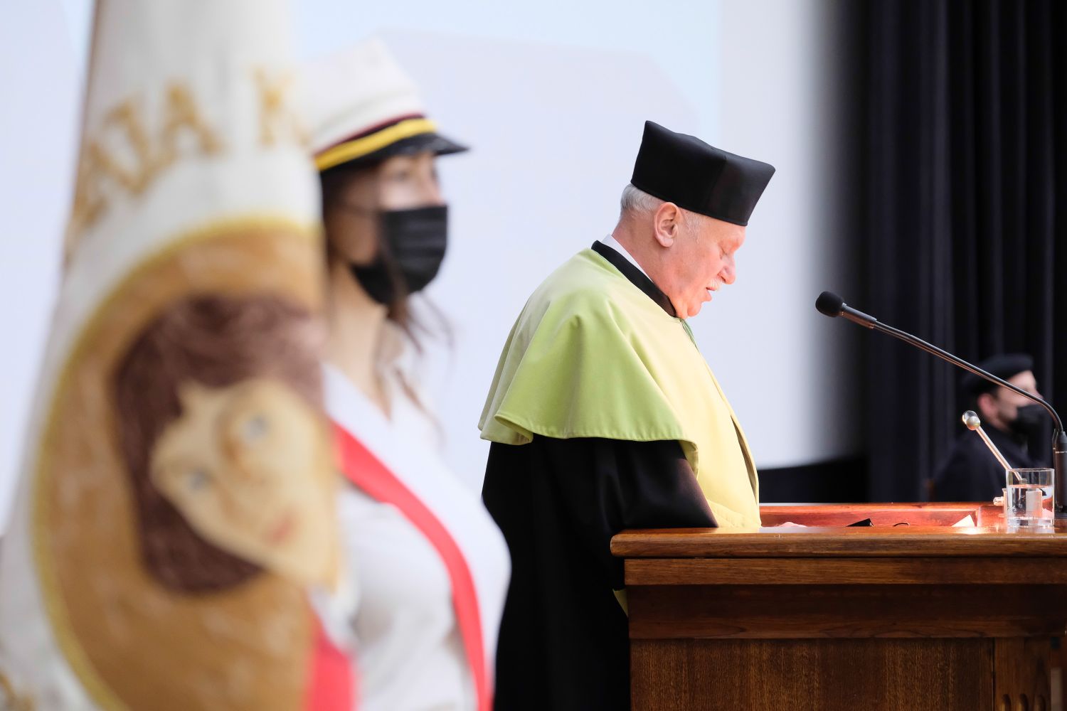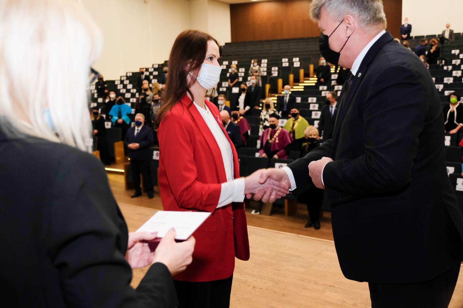 Rektor przypomniał również cele, które stawia przed sobą UMK, a które precyzyjnie wytycza Strategia Uniwersytetu na najbliższe lata. – Strategia kładzie silny nacisk na rozwój naszego potencjału naukowego – mówił rektor. - We współczesnym świecie uniwersytety muszą już nie tylko prowadzić badania na najwyższym poziomie, lecz także szybko i skutecznie reagować na pojawiające się wyzwania społeczne. Trwający wciąż okres pandemii pokazał to w jednoznaczny sposób.