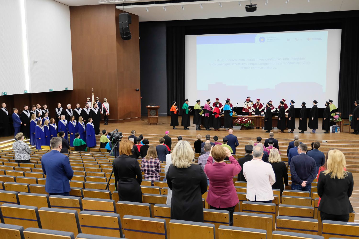 Podczas obchodów Święta nastąpiło także przekazanie dyplomów nowym doktorom habilitowanym oraz promocja doktorska z udziałem przedstawicieli i przedstawicielek poszczególnych dziedzin, którzy złożyli ślubowanie w imieniu wszystkich doktorów.