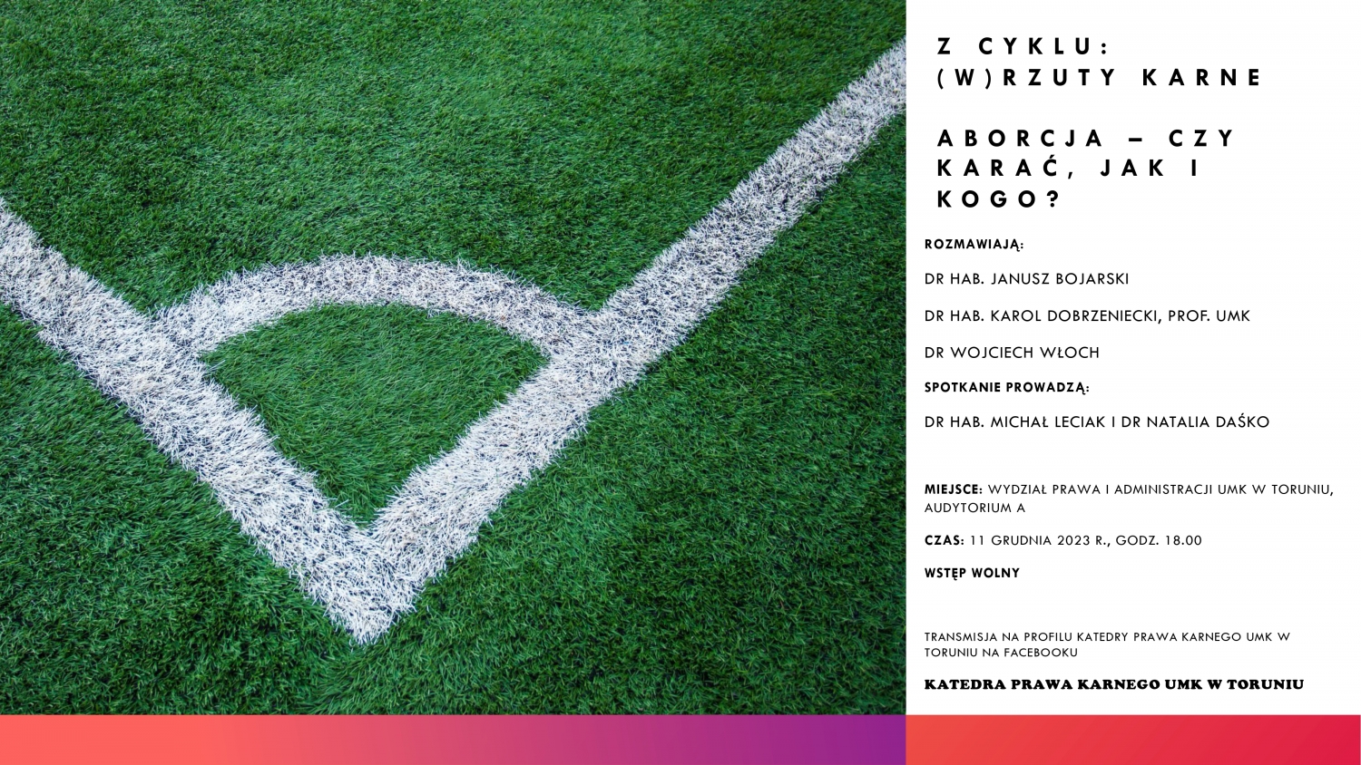 Katedra Prawa Karnego zaprasza na drugie spotkanie z cyklu (w)rzuty karne, które poświęcone zostanie tematyce aborcji (Aborcja - czy karać, jak i kogo?).