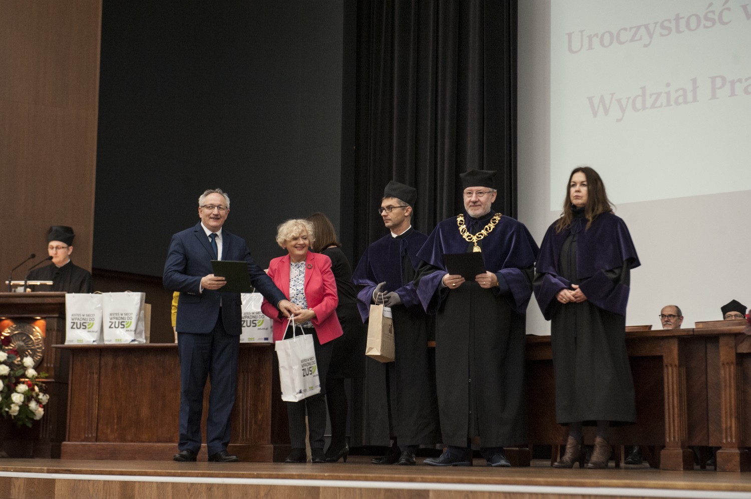 Podczas uroczystości wręczone zostały także nagrody dla najlepszego absolwenta i studenta Wydziału. Tytuł najlepszego absolwenta Wydziału Prawa i Administracji zdobyła Pani mgr Renacie Badowiec, natomiast najlepszą studentką Wydziału została Pani Aleksandra Gizińska – studentka V roku prawa stacjonarnego.