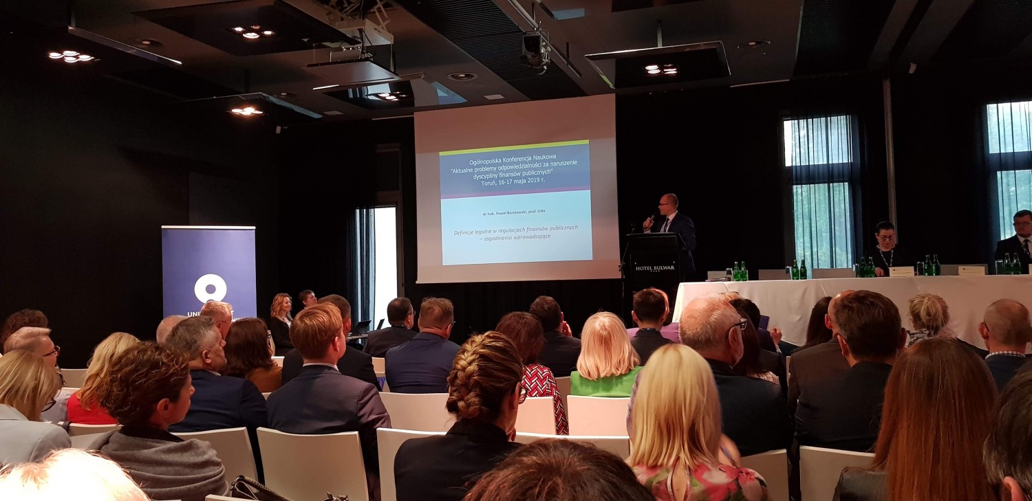 W dniach 16-17 maja 2019 r. w Hotelu Bulwar w Toruniu odbyła się Ogólnopolska Konferencja Naukowa pt. „Aktualne problemy odpowiedzialności za naruszenie dyscypliny finansów publicznych”. W organizowanej przez Wydział Prawa UMK razem z Głównym Rzecznikiem Dyscypliny Finansów Publicznych, Główną Komisją Orzekającą, Regionalną Izbą Obrachunkową w Bydgoszczy i Urzędem Miasta Torunia Konferencji wzięło udział 166 uczestników, wśród których znaleźli się pracownicy naukowi kilkunastu polskich uczelni wyższych, członkowie Głównej Komisji Orzekającej, rzecznicy dyscypliny finansów publicznych z całego kraju, przedstawiciele wszystkich Regionalnych Izb Obrachunkowych, pracownicy wielu ministerstw (głównie Ministerstwa Finansów i Ministerstwa Sprawiedliwości), przedstawiciele jednostek samorządu terytorialnego oraz radcy prawni. Przy okazji Konferencji odbyło się szkolenie przygotowane dla członków Głównej Komisji Orzekającej i rzeczników dyscypliny finansów publicznych.