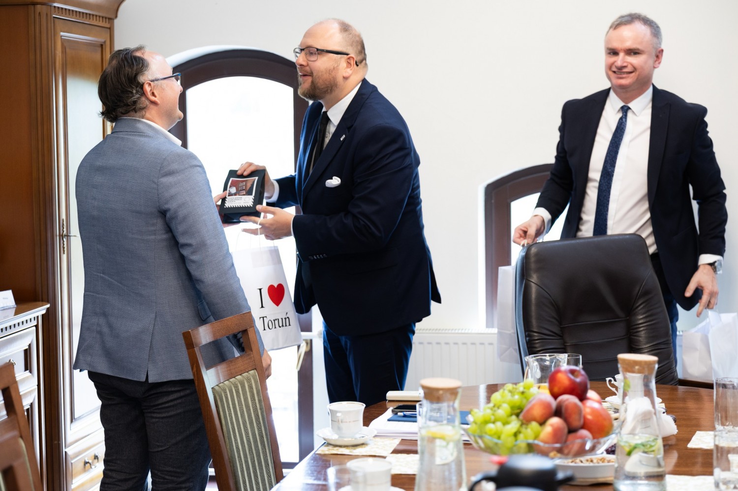4 lipca 2025 roku w Urzędzie Miasta Torunia odbyło się spotkanie Władz Dziekańskich oraz Zespołu badawczego ds. opracowania i wdrożenia mechanizmów mediacji w sprawach administracyjnych z Prezydentem Miasta Torunia Pawłem Gulewskim.